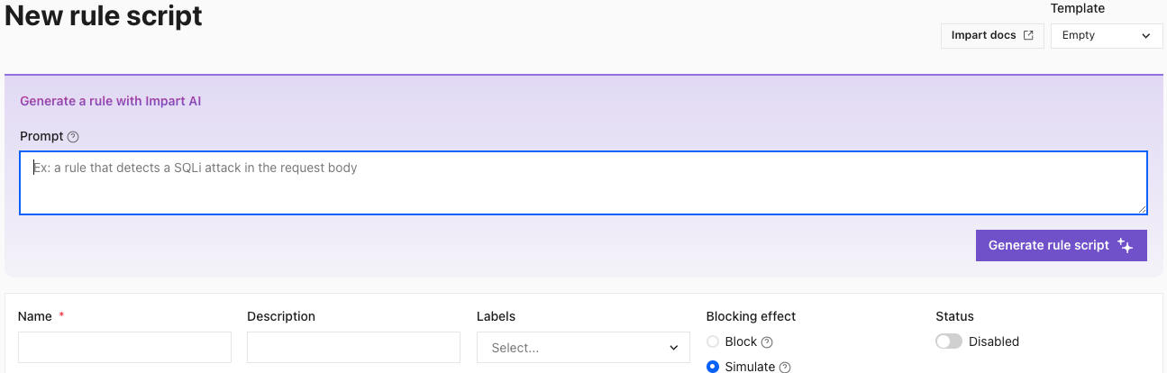 - Start with a Prompt: Simply submit a rule generation prompt to the Impart Platform. No need for deep expertise—just describe the problem.