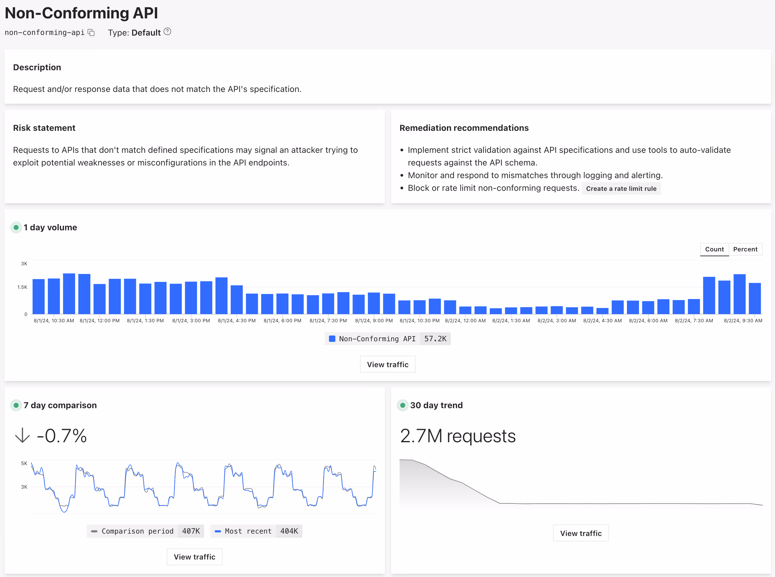 Impart can not only discover your API endpoints, but also deep insights such as sensitive data, documentation drift, misconfigurations and vulnerabilities, and more. With Impart, security teams can find security risks lurking in their environments before attackers exploit them.